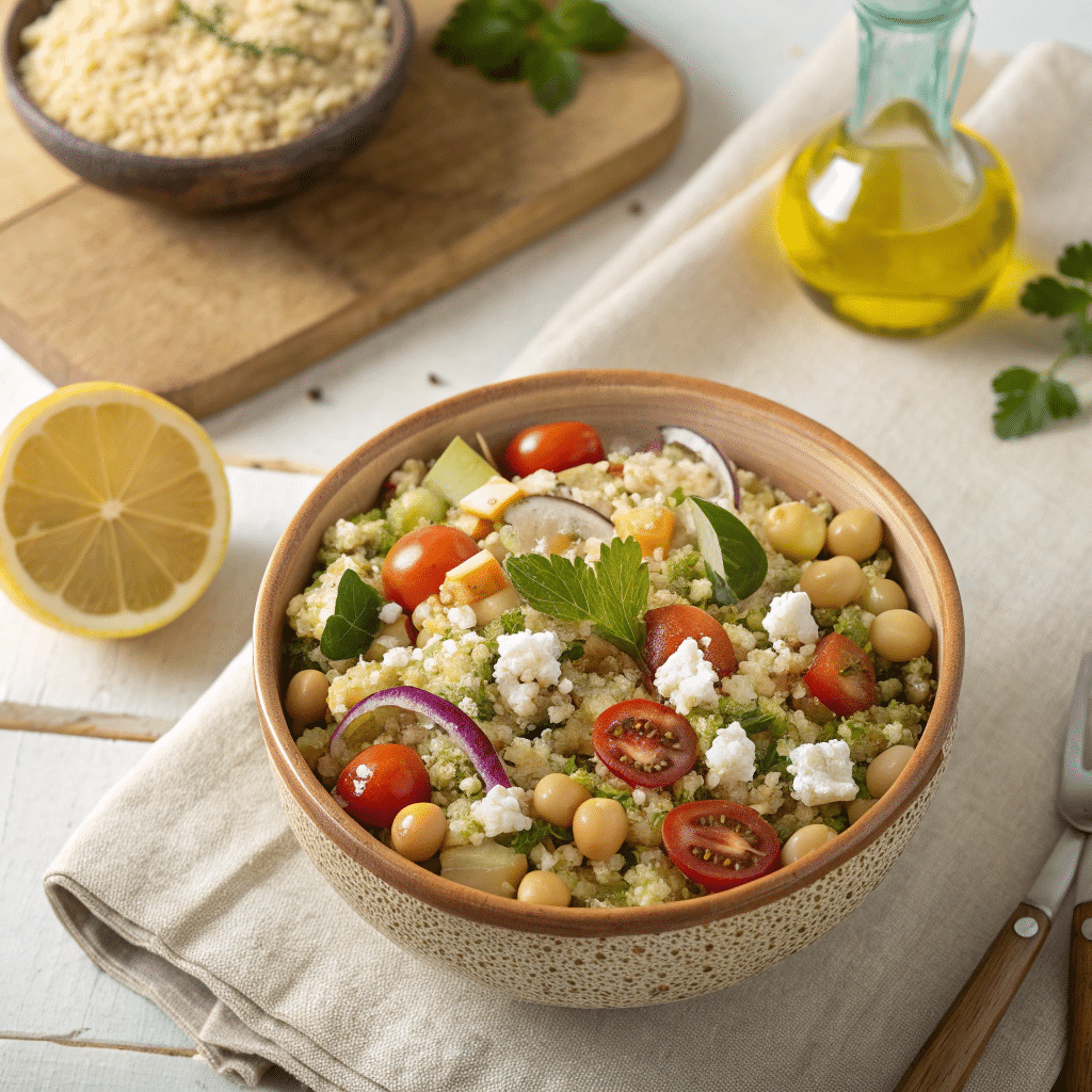- Grains: Use cooked quinoa, brown rice, or couscous as the base. These grains add fiber and keep the dish filling and satisfying.