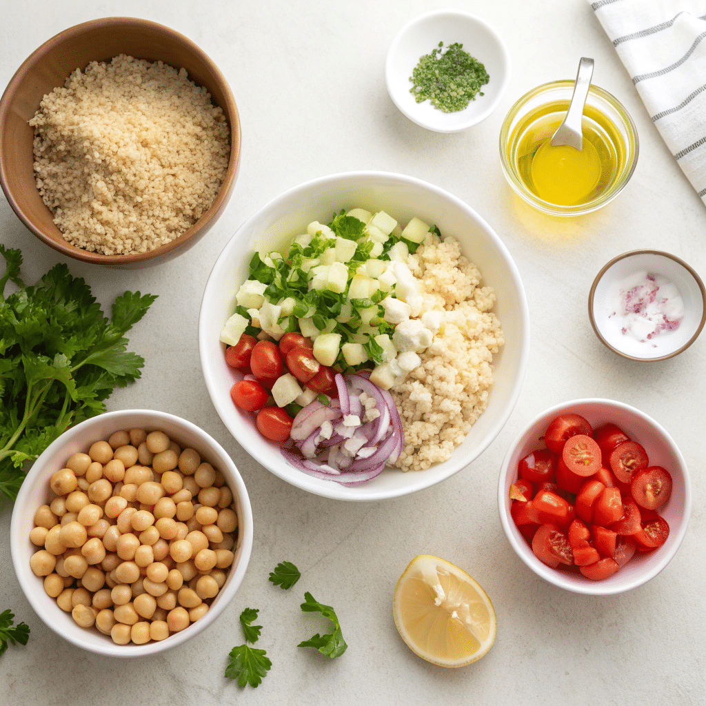 This salad’s not just delicious—it’s a powerhouse of nutrition. Quinoa brings all nine essential amino acids, while chickpeas add extra fiber and plant protein. The veggies and herbs give antioxidants, and that olive oil-lemon combo delivers heart-healthy fats.