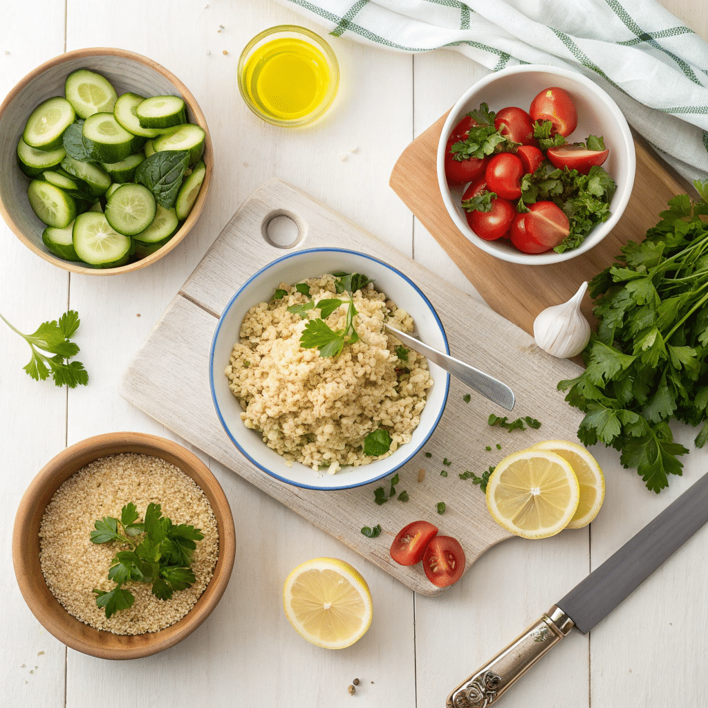 - Quinoa Cauliflower Tabbouleh – Mix quinoa and finely chopped cauliflower for a lighter texture.